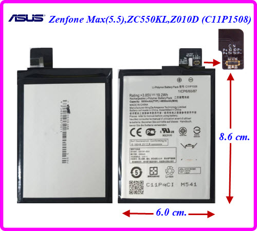 - แบตเตอรี่ Asus Zenfone Max(5.5),ZC550KL,Z010D (C11P1508) 6.0x8.6 cm. 5000 mAh.