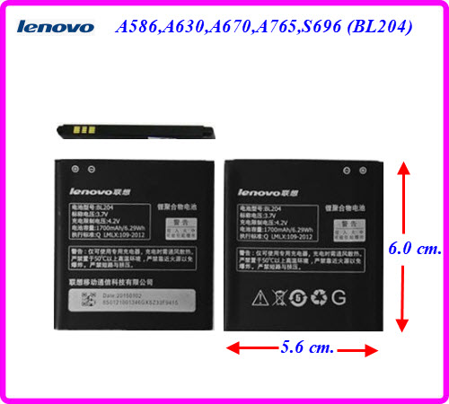 แบตเตอรี่ Lenovo A586,A630,A670,A765,S696 (BL204) 5.6x6.0 cm. 1700 mAh.