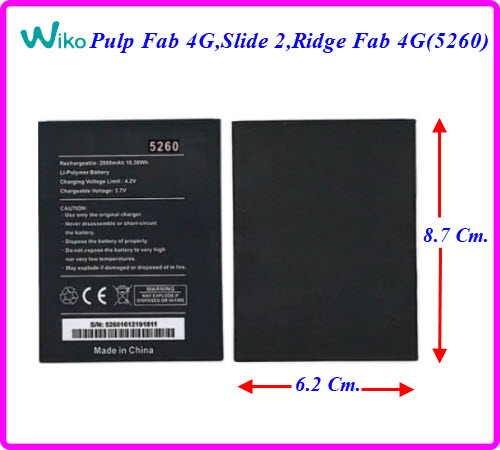 แบตเตอรี่ Wiko Pulp Fab 4G,Slide 2,Ridge Fab 4G(5260) 6.2x8.7 Cm.