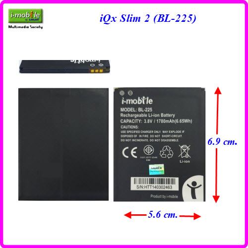 - แบตเตอรี่ i-mobile iQx Slim 2 (BL-225) 5.6x6.9 cm. 1780 mAh.