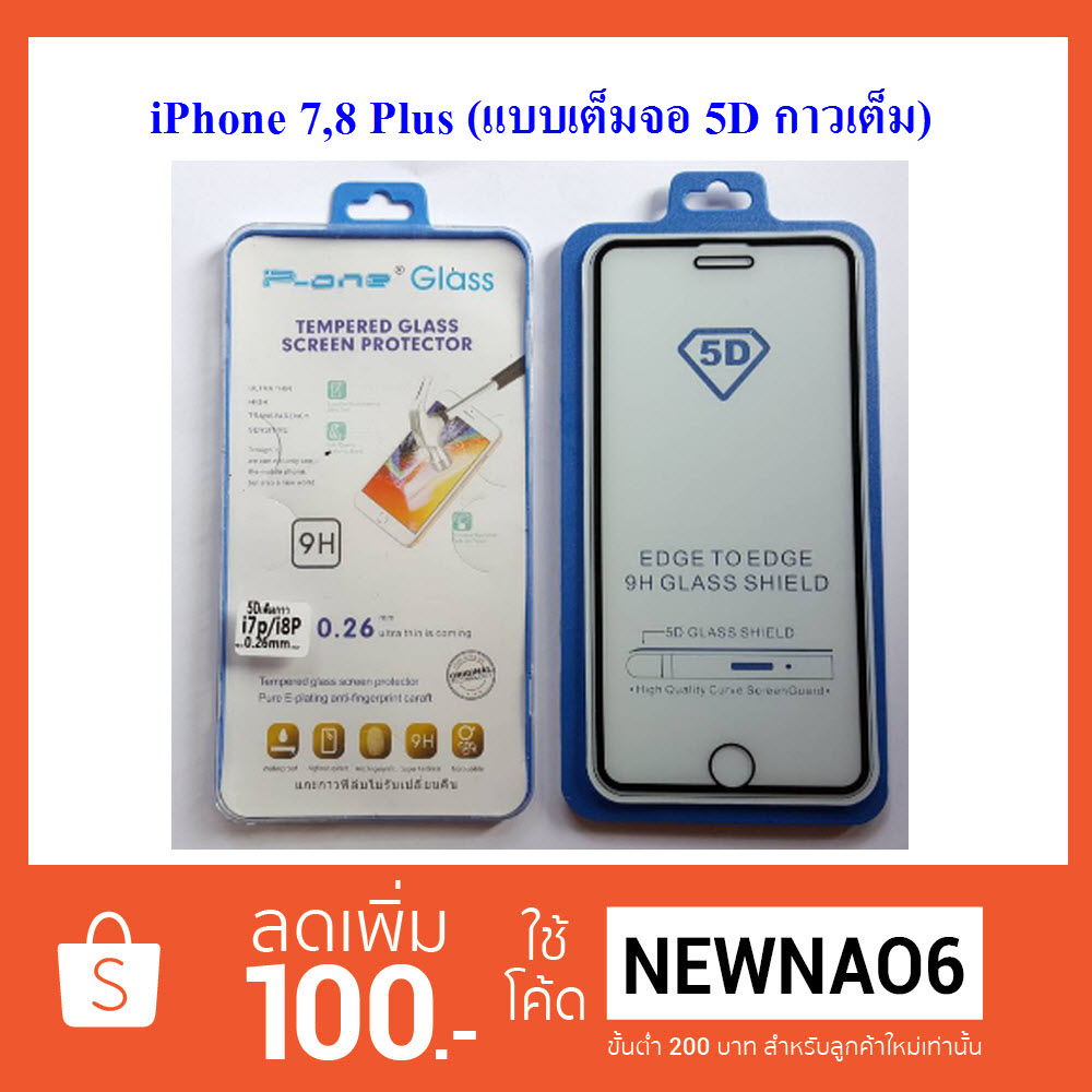 ฟีล์มกระจก(กันแตก) iPhone 7 Plus,8 Plus (5.5) (แบบเต็มจอ 5D กาวเต็มแผ่น)