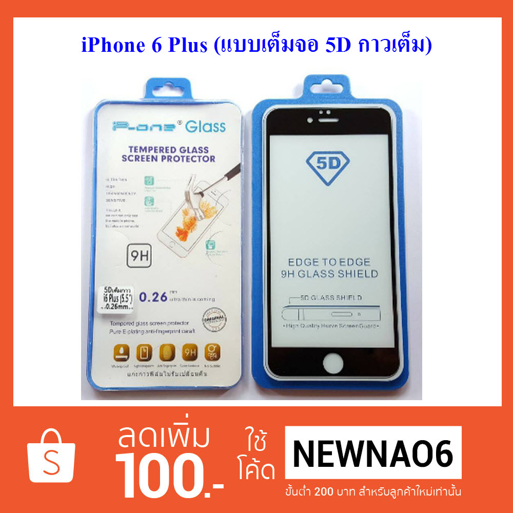 - ฟีล์มกระจก(กันแตก) iPhone 6 Plus (5.5) 5D (เต็มจอ-กาวเต็มแผ่น)