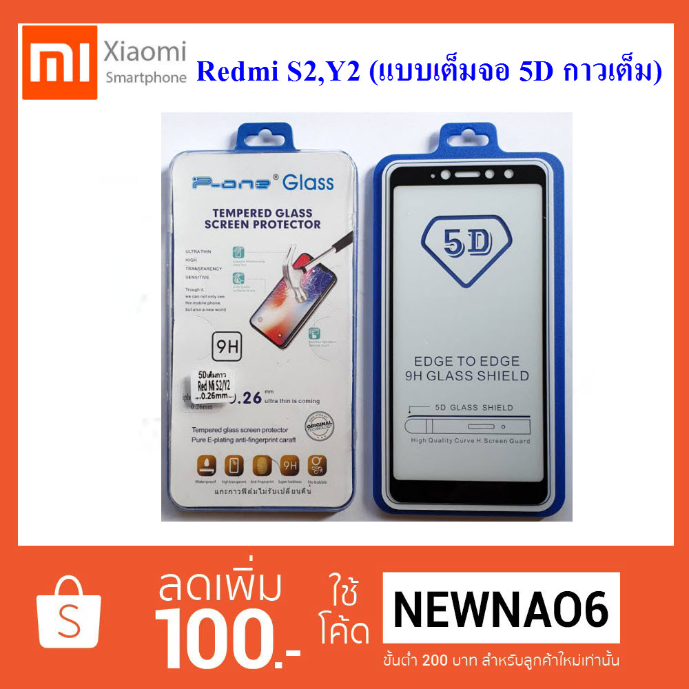 - ฟีล์มกระจก(กันแตก) Xiaomi Redmi S2,Y2 (5D เต็มจอ กาวเต็ม)