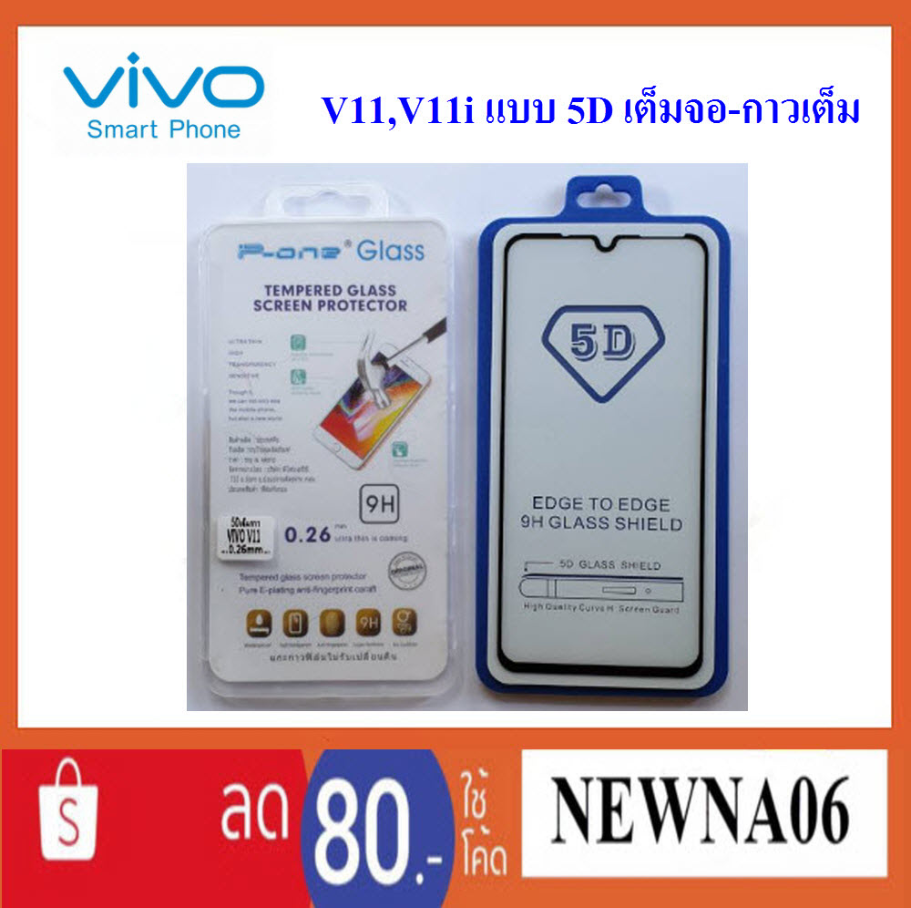 - ฟีล์มกระจก(กันแตก) Vivo V11,V11i แบบ 5D เต็มจอ-กาวเต็ม