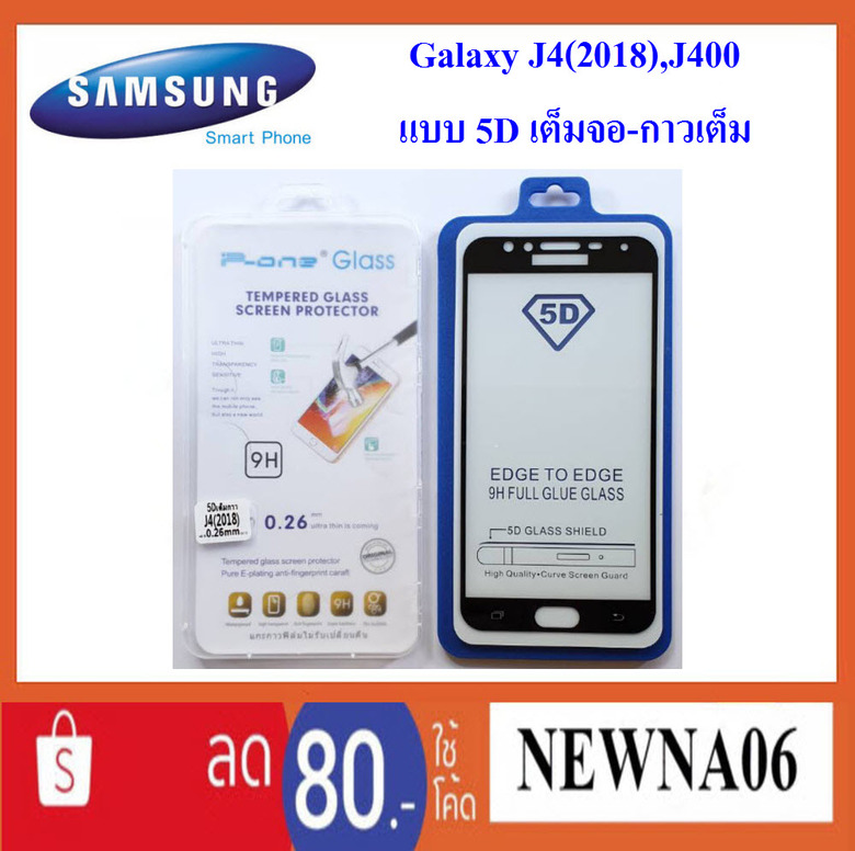 | ฟีล์มกระจก(กันแตก) Samsung Galaxy J4(2018),J400 แบบ 5D เต็มจอ-กาวเต็ม |