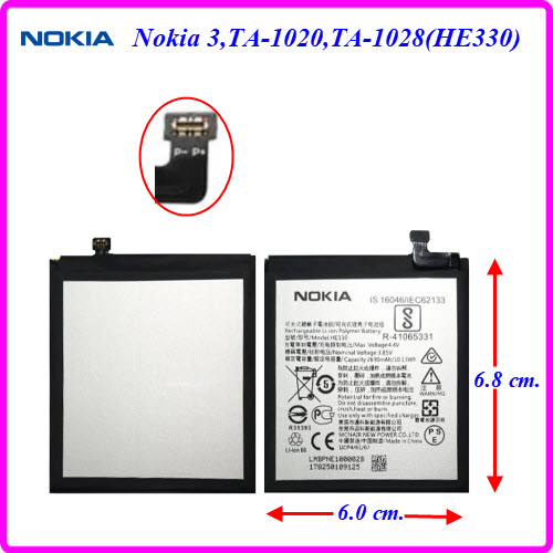 | แบตเตอรี่ Nokia 3,TA-1020,TA-1028,TA-1032,TA-1038(HE330) Or. 6.0x6.8 cm.2630 mAh. |