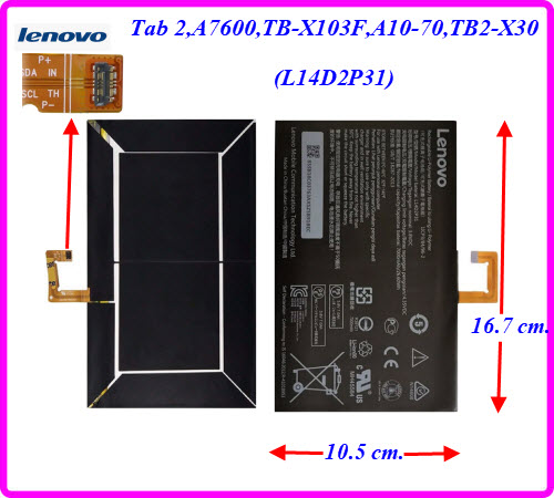 - แบตเตอรี่ Lenovo Tab 2,A7600,TB-X103F,A10-70,TB2-X30 (L14D2P31) 10.5x16.7 cm. 7000 mAh.
