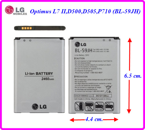 แบตเตอรี่ LG Optimus L7 II,D500,D505,P710,P713,P715,F3,F5,F6,VS870 (BL-59JH) 4.4x6.5 cm. 2460 mAh.