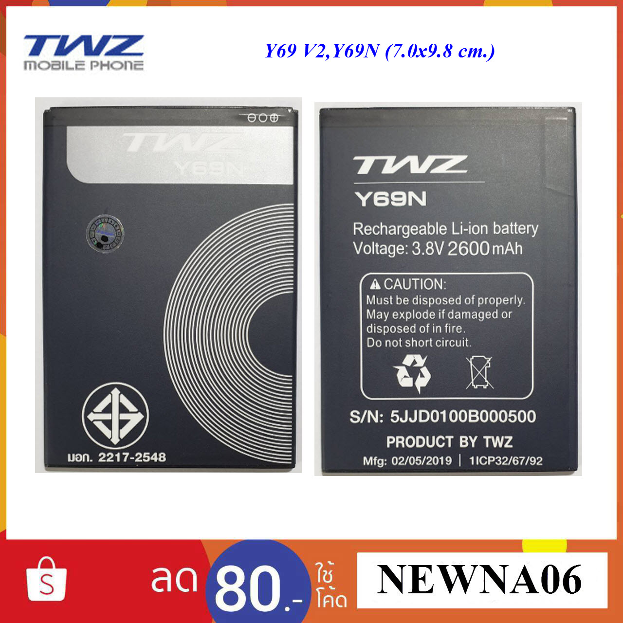 แบตเตอรี่ TWZ Y69 V2,Y69N(7.0x9.8 cm.) ของแท้