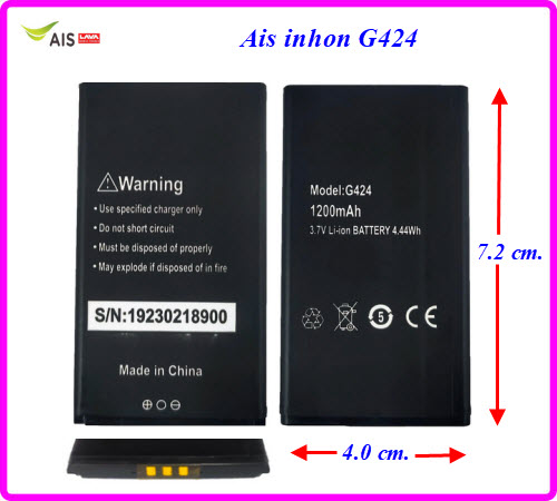 แบตเตอรี่ Ais inhon G424 4.0x7.2 cm. 1200 mAh.