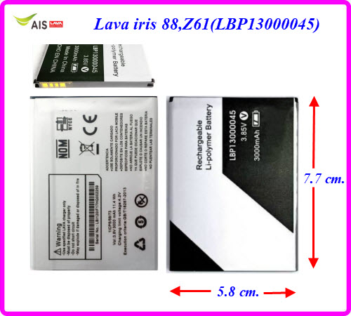 แบตเตอรี่ Ais Lava iris 88,Z61(LBP13000045) 5.8x7.7 cm. 3000 mAh.