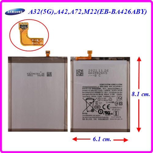| แบตเตอรี่ Samsung A32(5G),A326,A42,A426,A72,M22(EB-BA426ABY) 6.1x8.1 cm.5000 mAh. |