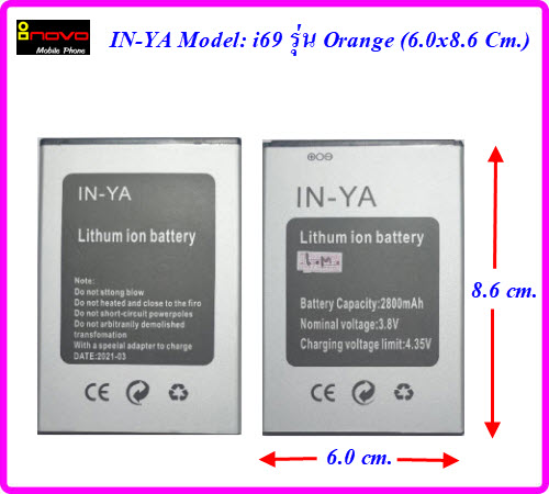 | แบตเตอรี่ inovo IN-YA Model: i69 รุ่น Orange,i51 Panda,i615 Halo,i618 App,YA,YD,JC(6.0x8.6 Cm.) ของแท้ |
