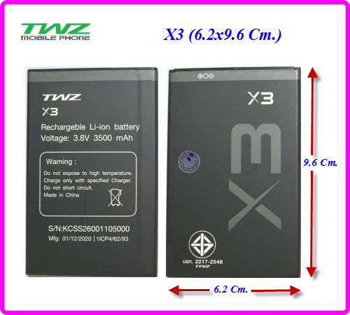 แบตเตอรี่ TWZ X3 (6.2x9.6 Cm.) ของแท้