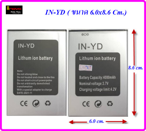 | แบตเตอรี่ inovo IN-YD Model: i618 รุ่น App,YD,YA,JC (6.0x8.6 cm.) ของแท้ |