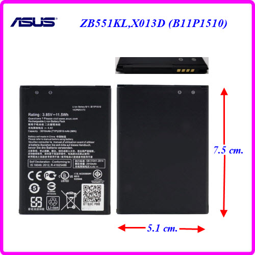 - แบตเตอรี่ Asus ZB551KL,X013D (B11P1510) 5.1x7.5 cm. 3010 mAh.